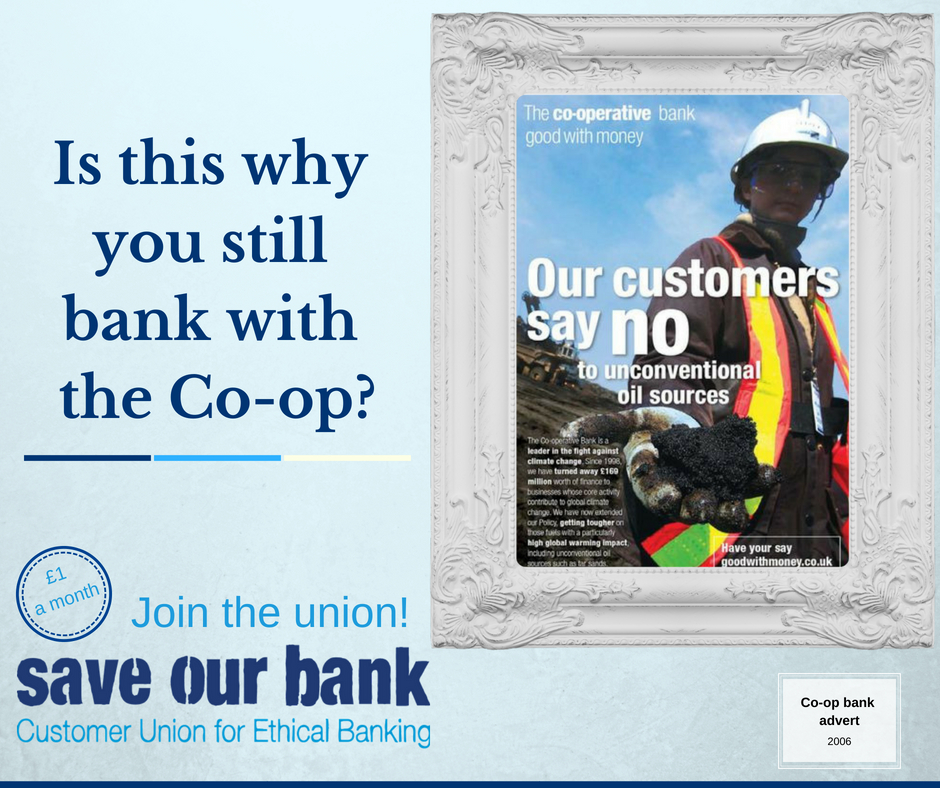 In response, a group of Co-op Bank customers set up the Save Our Bank campaign with support from Ethical Consumer magazine. The campaign had two aims: to ensure that the bank sticks to its principles and, with time, to help the bank return to some form of co-operative control.